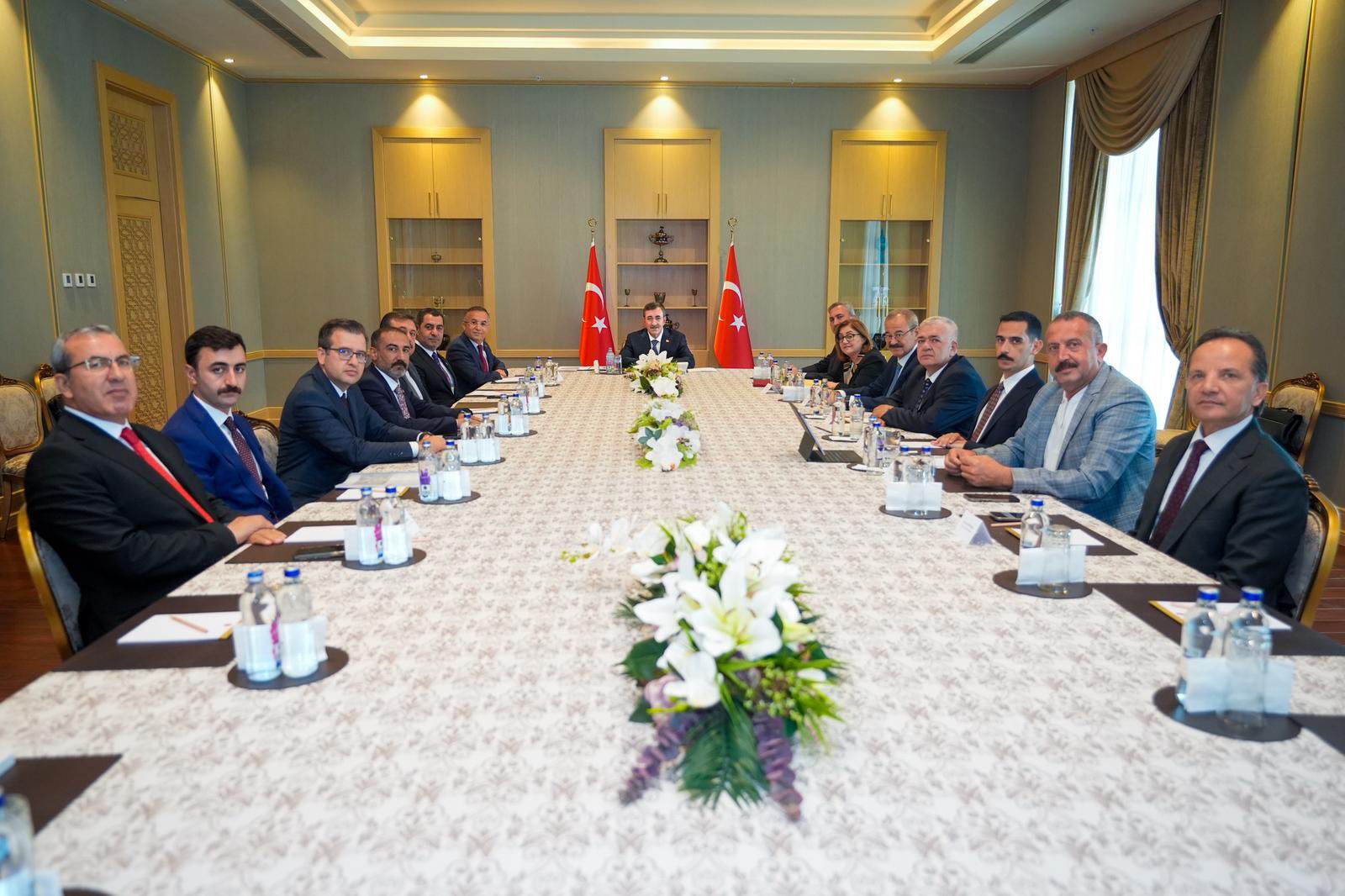 İl Başkanımız Sayın Fatih Muhaddis Fedaioğlu, Grup Başkan Vekilimiz Sayın Abdulhamit Gül, Valimiz Sayın Kemal Çeber, Milletvekilimiz Sayın Bünyamin Bozgeyik, GBB Başkanımız Sayın Fatma Şahin, İslahiye Belediye Başkanımız Sayın Kemal Vural, İslahiye Kaymakamı Sayın Mehmet Soylu, Karkamış Kaymakamı Sayın Mustafa Babacan, Gaziantep Gümrük Bölge Müdürü Sayın Nihat Kınık, GSO Meclis Başkanı Sayın Adil Sani Konukoğlu, GTO Yönetim Kurulu Başkanı Sayın Mehmet Tuncay Yıldırım, GTB Yönetim Kurulu Başkanı Sayın Mehmet Akıncı ile birlikte, Cumhurbaşkanı Yardımcımız Sayın Cevdet Yılmaz’ı ziyaret etti.