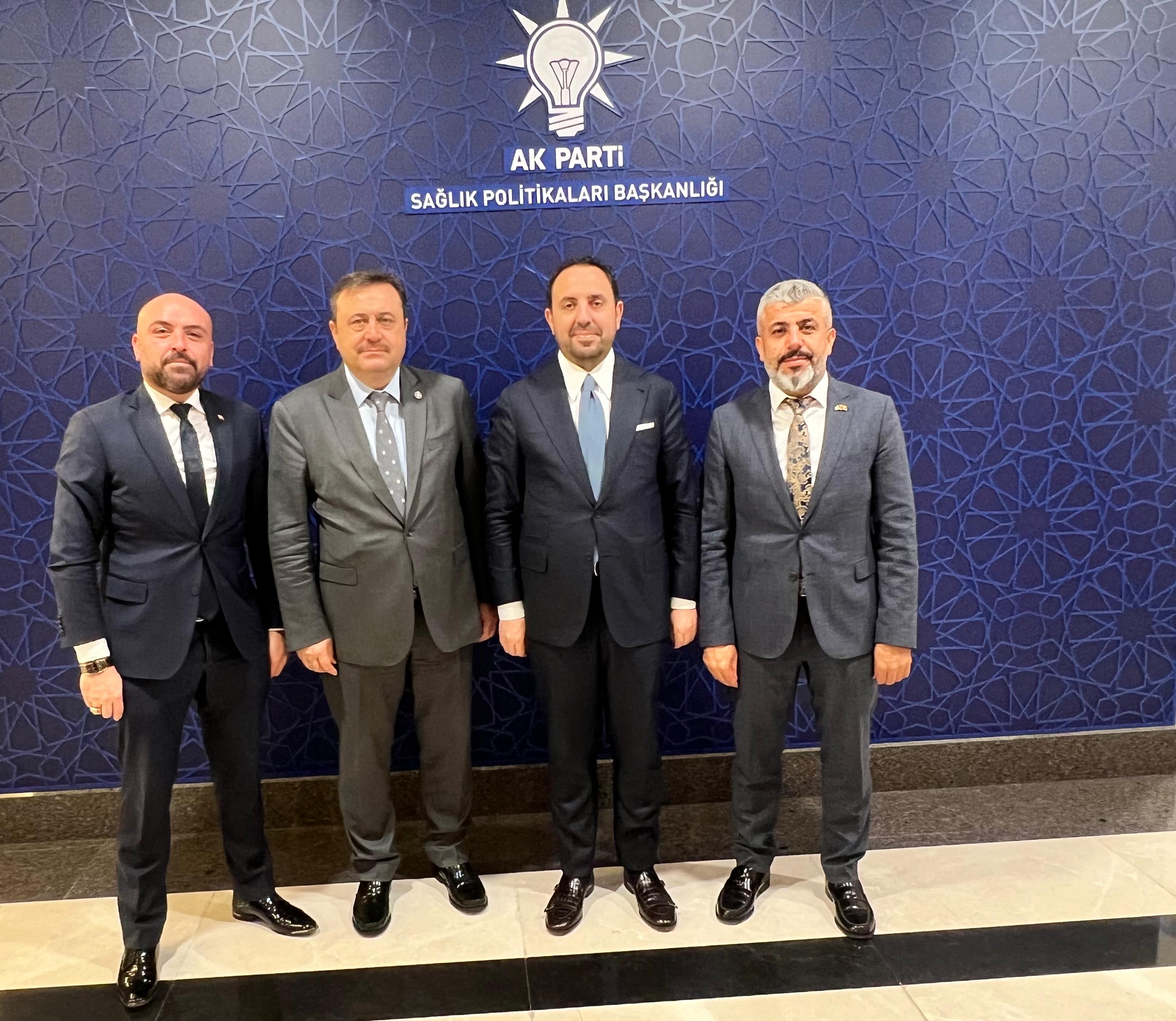 İl Başkanımız Sayın Fatih Muhaddis Fedaioğlu, İl Sağlık Politikaları Başkanımız Sayın Fatih Deniz ve İl Yönetim Kurulu Üyemiz Sayın Kemal Özufacık ile birlikte; Genel Başkan Yardımcımız ve Sağlık Politikaları Başkanımız Sayın Halit Yerebakan’ı, Birim Başkan Yardımcımız Sayın Mehmet Can’ı ve Grup Başkan Vekilimiz Sayın Abdulhamit Gül’ü ziyaret etti.